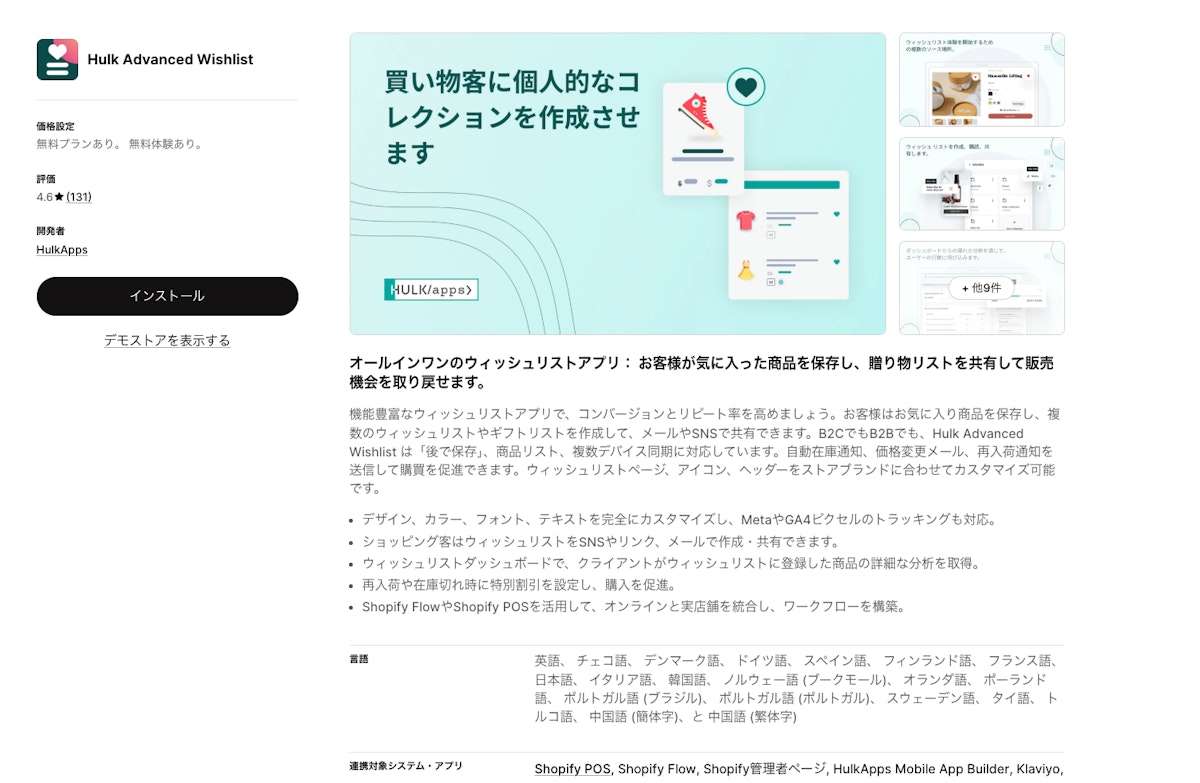 Shopifyウィッシュリストアプリの中で最も知名度が高いアプリです。